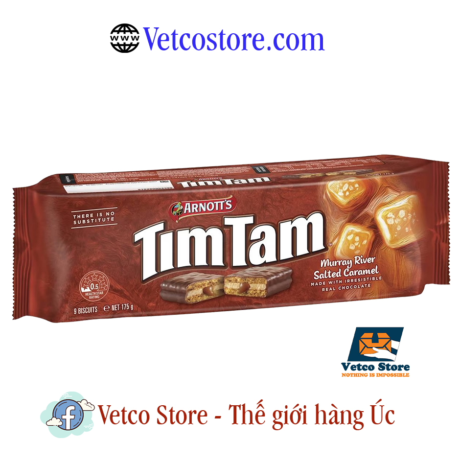 Arnott’s Tim Tam Murray River Salted Caramel Chocolate Biscuits là một phiên bản đặc biệt của dòng bánh quy Tim Tam, kết hợp giữa caramel mặn và sô cô la.