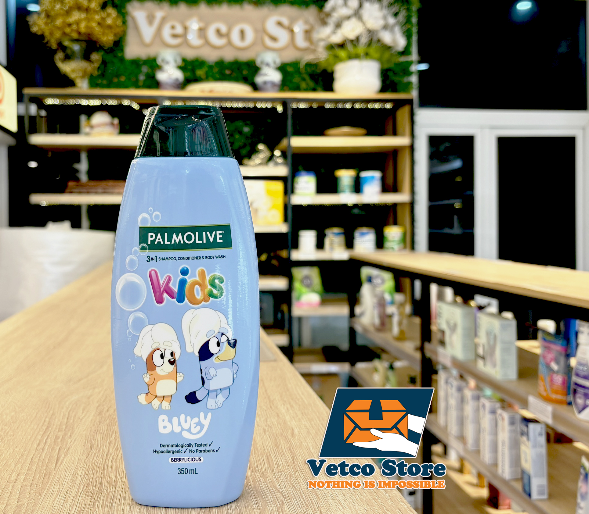 Dầu gội, dầu xả & sữa tắm Palmolive 3in1 Kids Bluey đã được kiểm nghiệm da liễu, không gây dị ứng và không chứa paraben.