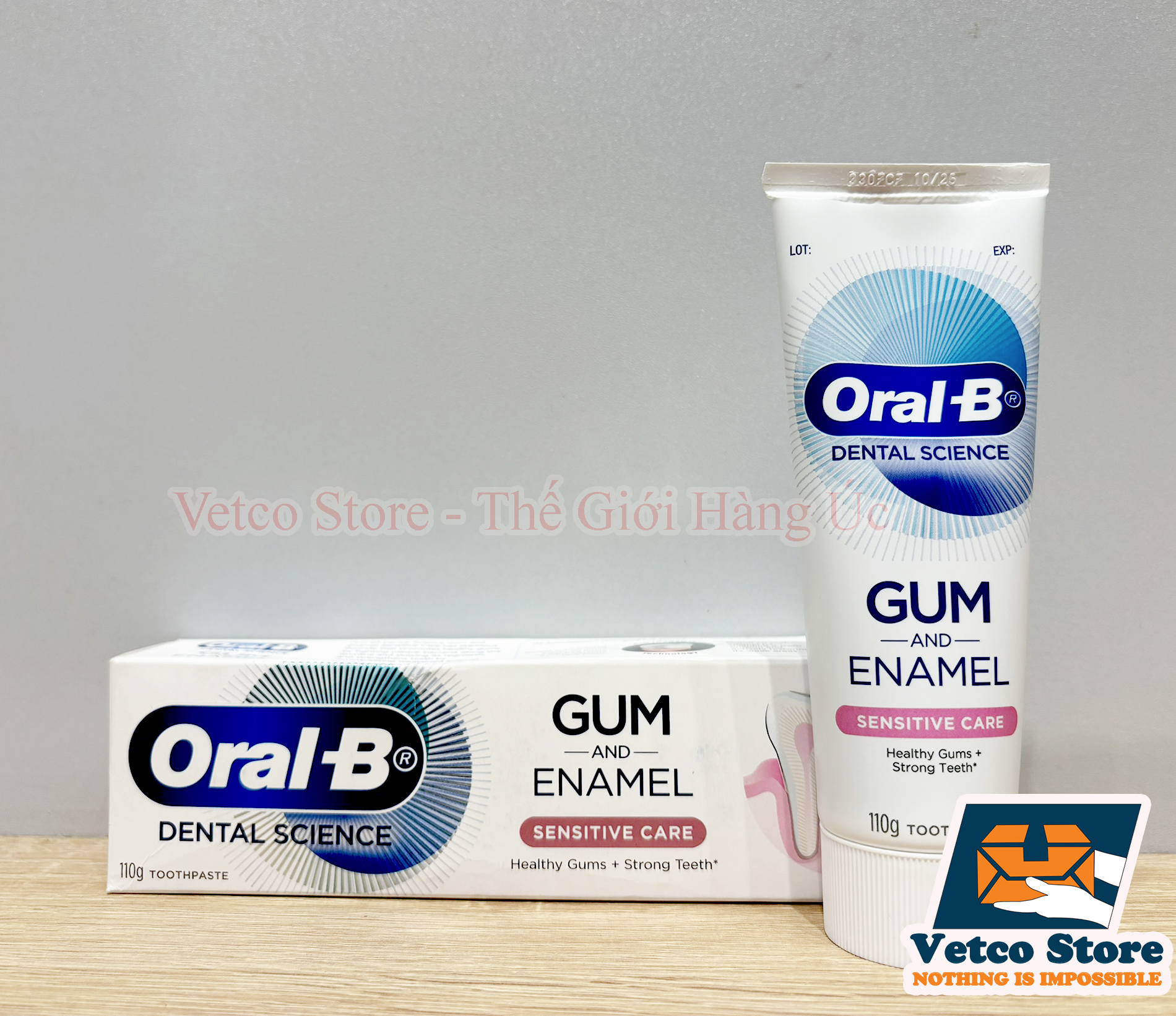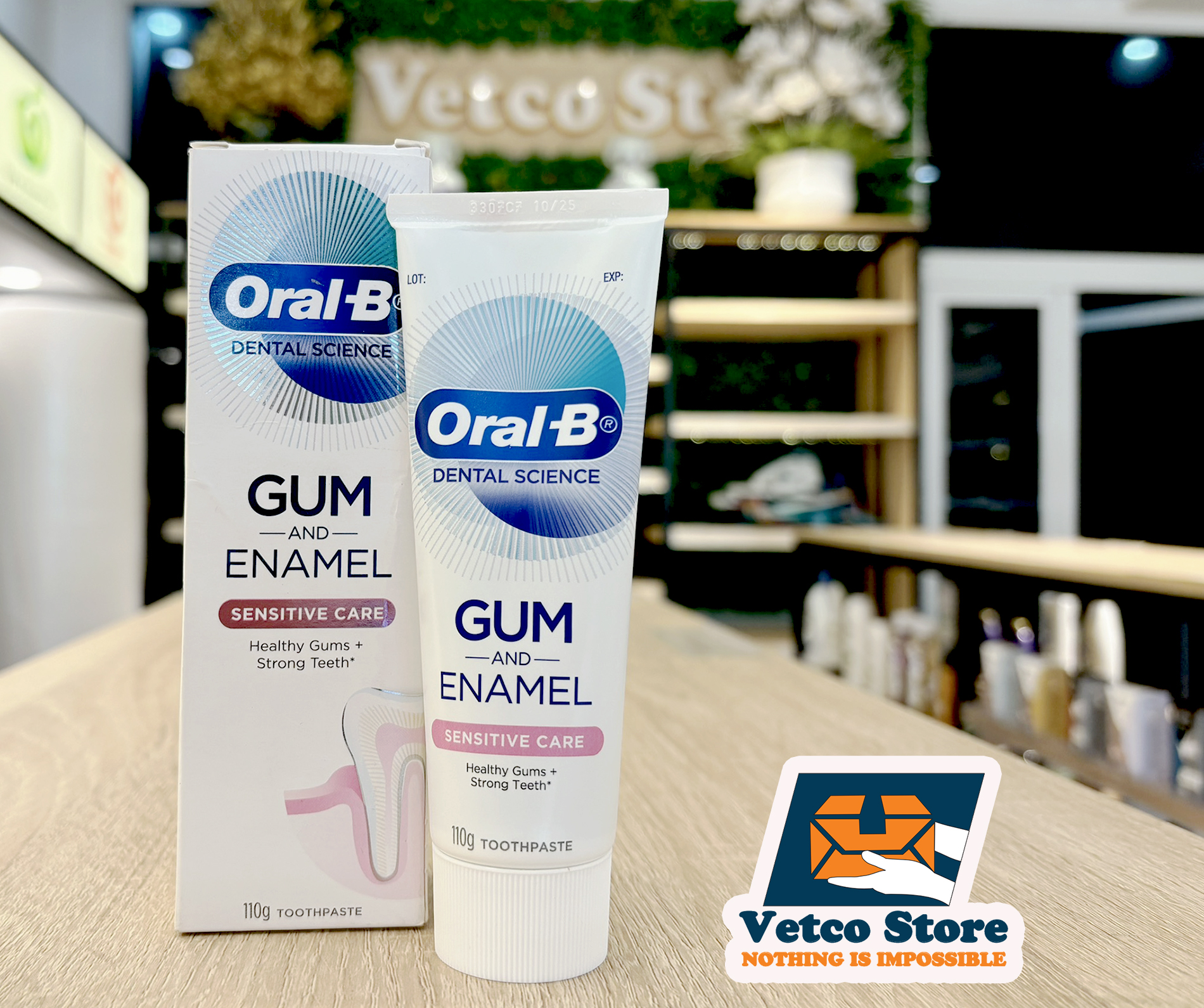 Kem đánh răng Oral-B Dental Science Gum & Enamel Sensitive Care đảm bảo cho bạn nướu răng khỏe mạnh và răng chắc khỏe*Sản phẩm có chứa thiếc fluoride giúp thúc đẩy nướu răng khỏe mạnh bằng cách chống lại vi khuẩn mảng bám dọc theo đường viền nướu và làm chậm quá trình tái phát của chúng, đồng thời giúp răng chắc khỏe hơn bằng cách tái khoáng hóa men răng yếu.