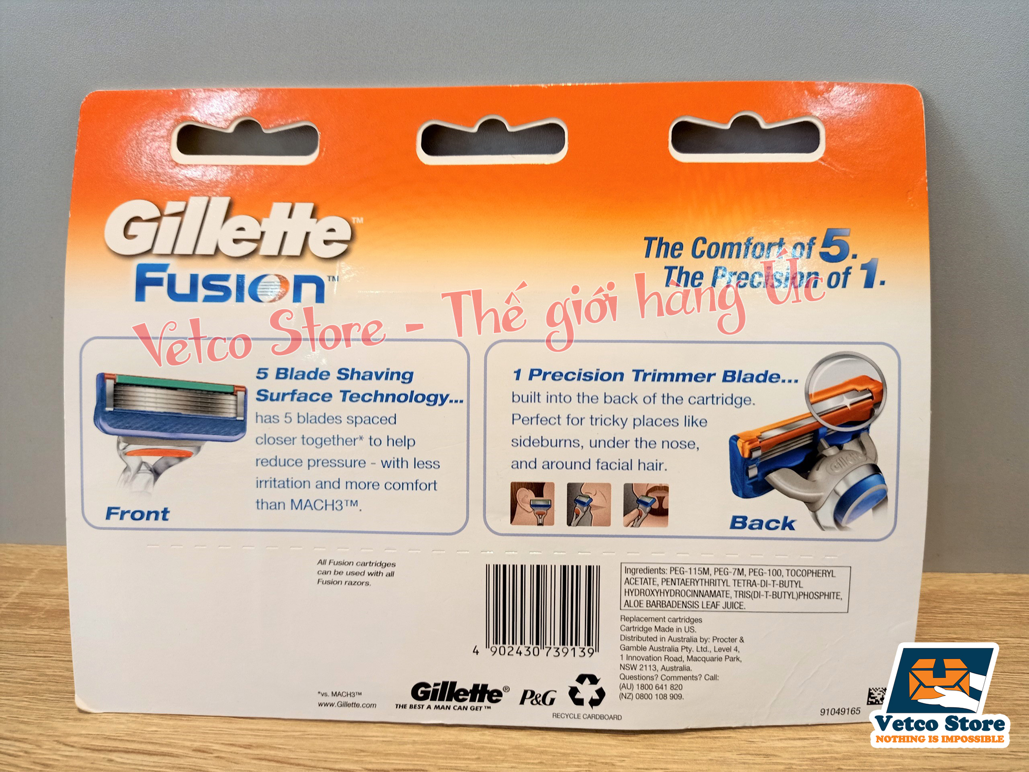 ❥ Lưỡi dao cạo Gillette Fusion được bao phủ bởi chất titan, ít gây kích ứng da.