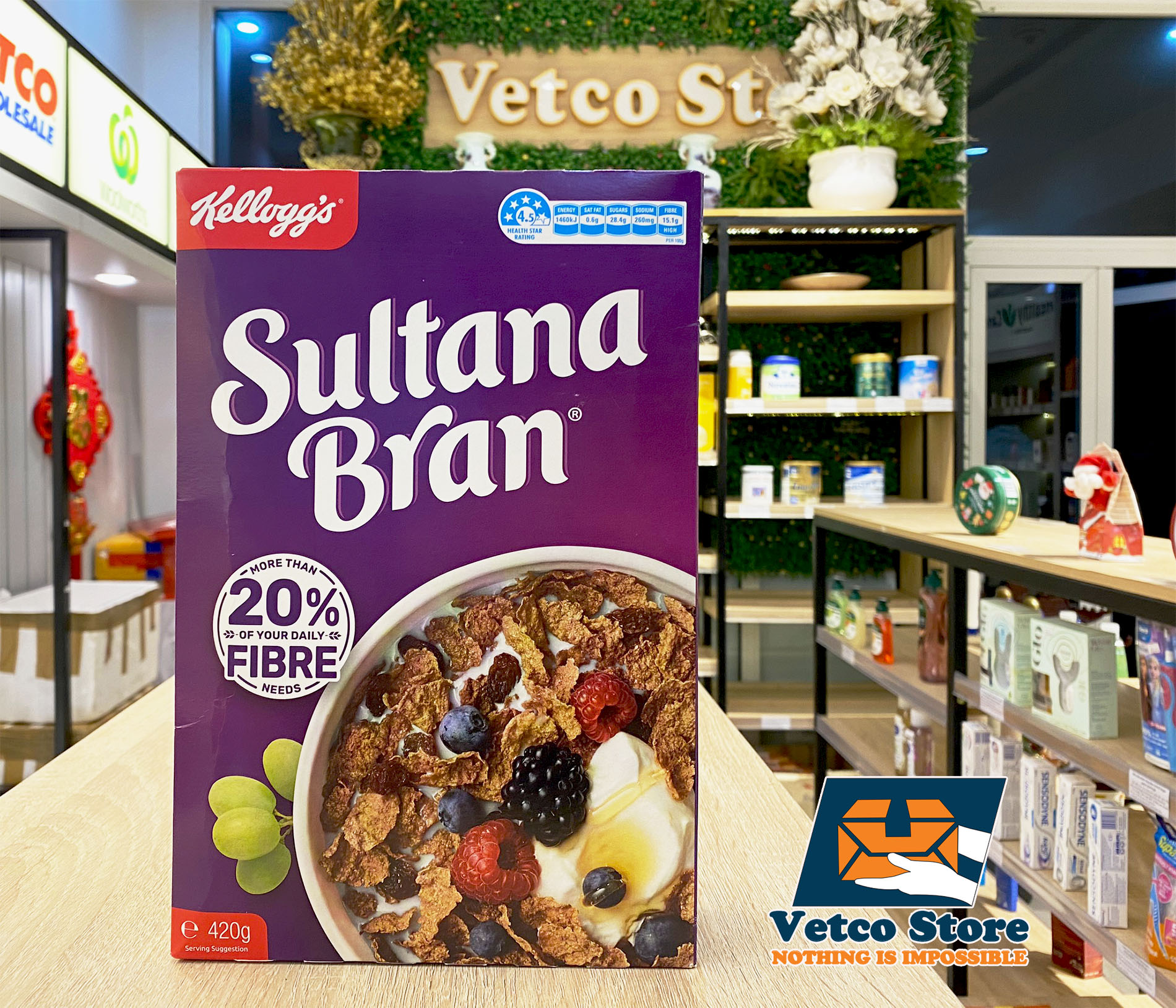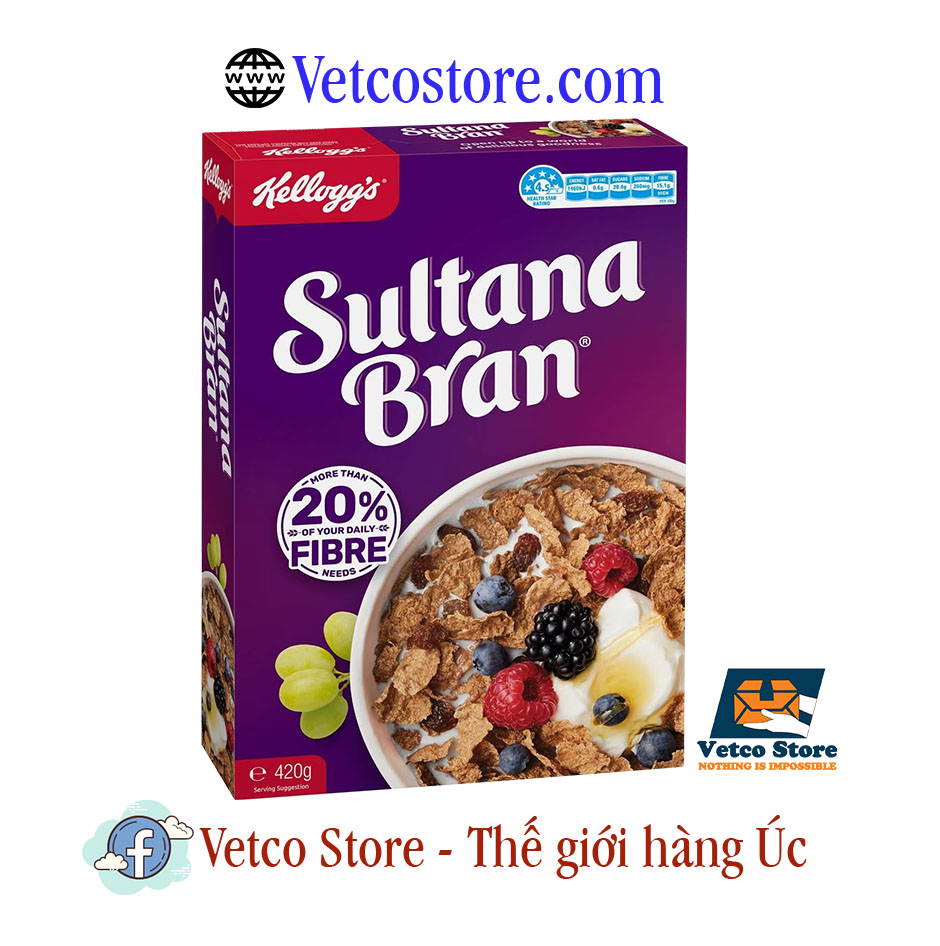 Ngũ cốc Sultana Bran của Kellogg từ lâu đã là sản phẩm được nhiều gia đình yêu thích. Với những miếng mạch nha giòn và nho mọng nước, Sultana Bran của Kellogg có hương vị thơm ngon của cám lúa mì và trái cây trong mỗi khẩu phần.