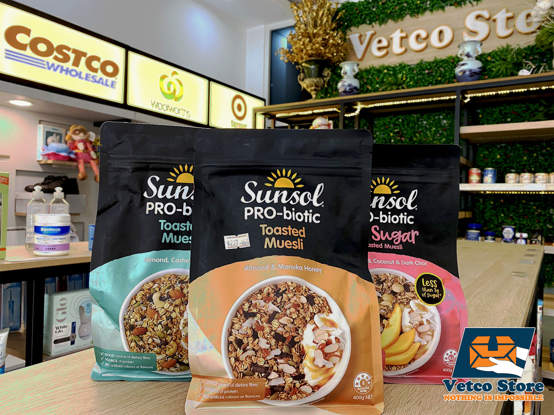 ♥ Sunsol pro-biotic LOW SUGAR muesli là một hỗn hợp muesli nướng giàu chất dinh dưỡng với sự tốt đẹp của chất xơ và Pro-Biotics và ít đường