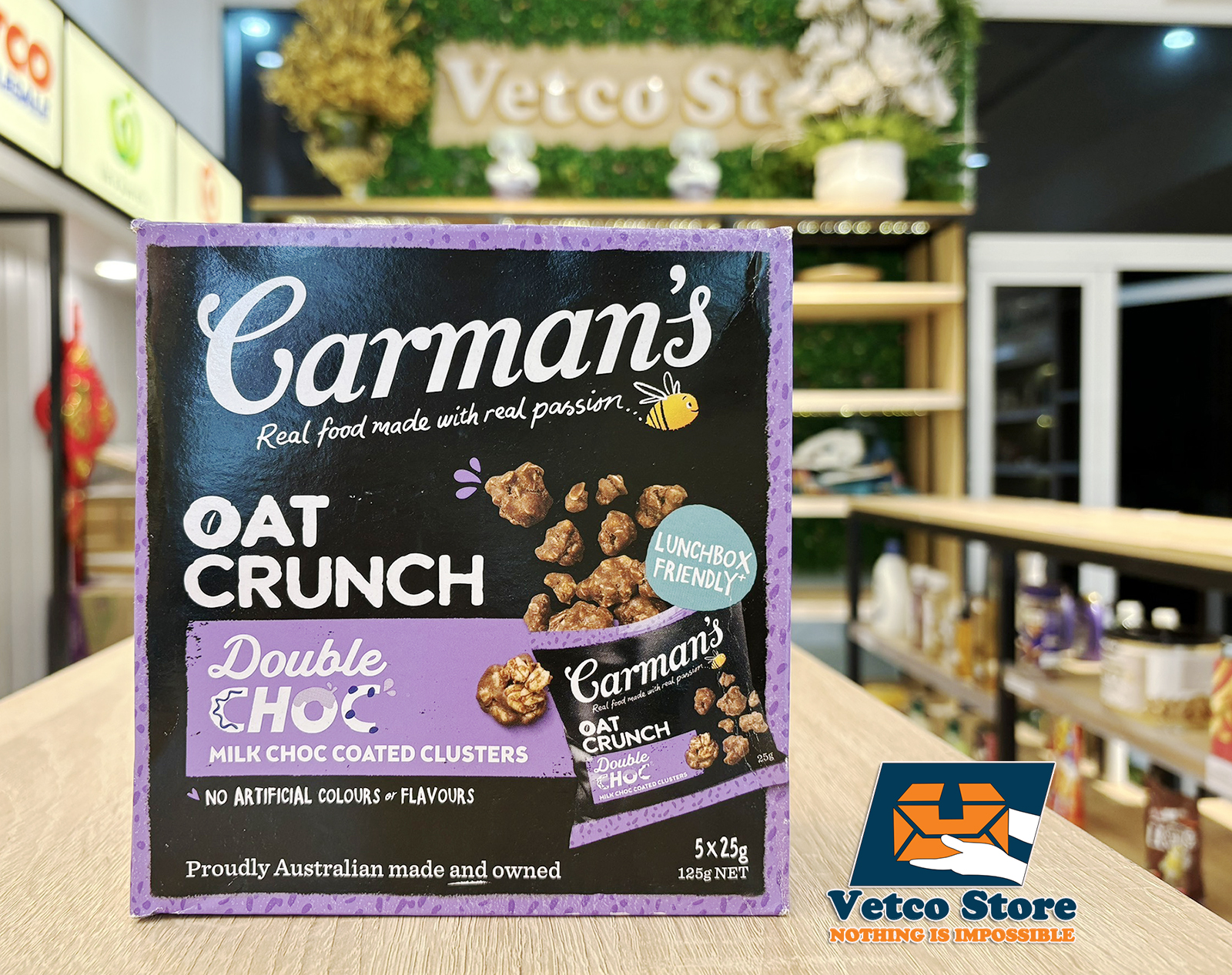 Carman’s Oat Crunch Double Choc 5 Pack 125g là một loại snack dinh dưỡng được làm từ yến mạch và chocolate, mang đến hương vị thơm ngon và tiện lợi cho người tiêu dùng.